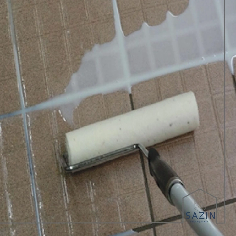 - اجرای عایق: پس از آمادهسازی سطح، نوبت به اجرای عایق رطوبتی نانو بی رنگ میرسد. برای بهبود عملکرد و چسبندگی عایق، توصیه میشود قبل از اعمال عایق، از پرایمر زیرکار L10 استفاده شود. پس از خشک شدن پرایمر، عایق بیرنگ نانو بهطور مستقیم بر روی سطح با استفاده از قلممو، غلتک یا حتی جارو نرم پخش میشود. این لایه نازک به صورت شفاف روی سطح مینشیند و بهسرعت شروع به خشک شدن میکند. در صورت نیاز به اعمال لایه دوم، باید صبر کرد تا لایه اول بهطور کامل خشک شود. برای افزایش استحکام و پایداری عایق، میتوان از توری مخصوص عایقبندی بین لایهها استفاده کرد.