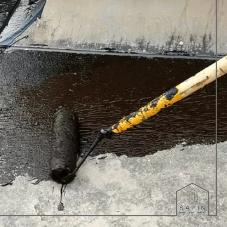 - در این مرحله، ایزوگام مایع با ضخامت مناسب روی سطح اعمال میشود.