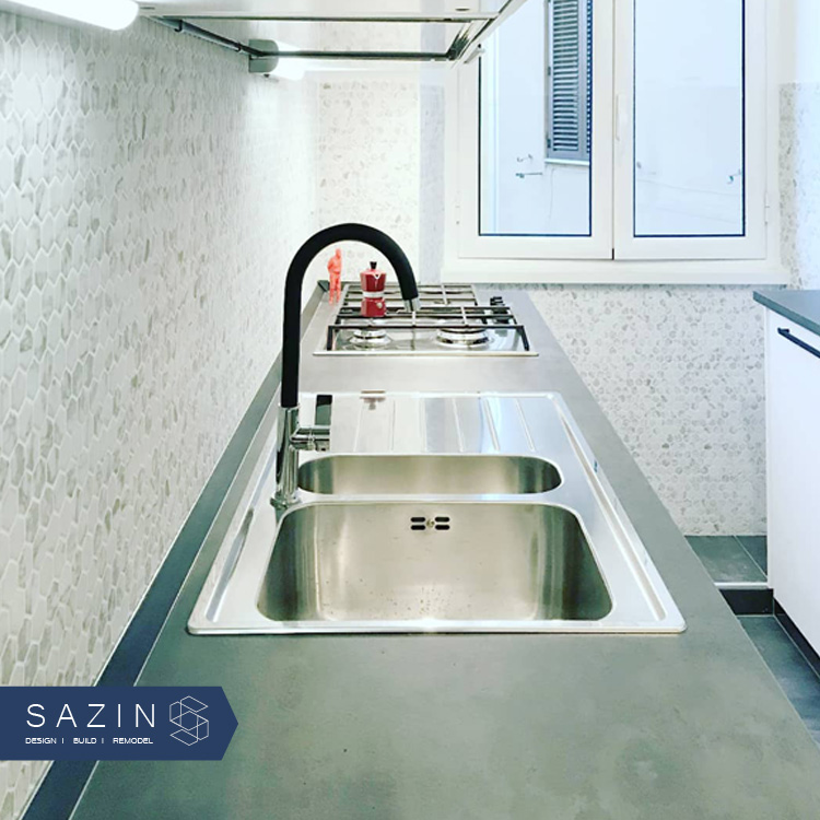 آپارتمان مد نظر با عمر 22 سال و متراژ 230 متر مربع در یکی از بهترین مناطق تهران واقع شده است که با توجه به فضای منطقه و خواست منطقه ای، کارفرما یک سریع تغییرات در فضای واحد،دیزاین پایانی ، تغییر جانمائی و به روزرسانی واحد خود داشته است.تیم طراحی شرکت سازین بعد از دریافت لیست خواسته های کارفرما اقدام به تهیه پلان های معماری و 3Dهای فضای موجود نمود و پس از تائیده نهایی کارفرما، اقدام به تهیه فاز نهائی، نقشه های اجرایی نمود.در پروژه خیابان الف یک سریع جانمائی و جابجائی در بازشوها لحاظ گردید، آشپزخانه و سرویس بهداشتی کاملا تخریب شده و مجددا به صورت غربی اجرا گردید. متریال استفاده شده در پروزه از بهترین و به روزترین متریال بوده است.